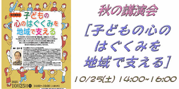 - 秋の講演会「子どもの心のはぐくみを地域で支える」[10/25 14:00〜16:00]